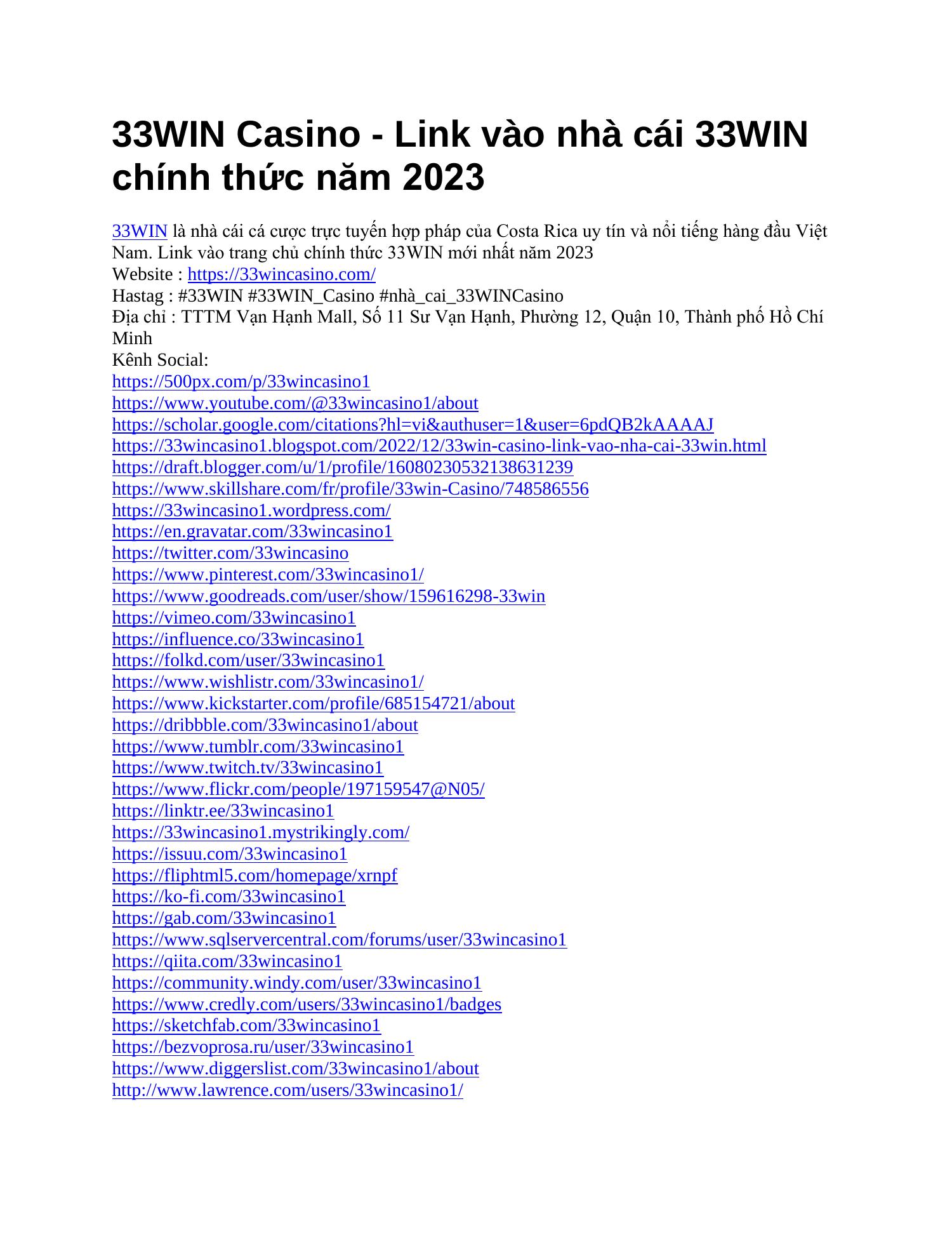 Tổng thể, liên kết 33win trở thành vấn đề kiếm lợi nhuận thành 1 tiến trình mê mẩn cùng bền chắc nhiều năm chậm, giúp ngôi nhà người tiêu pha vẫn cướp hữu được phương châm tài bao bao gồm 1 cách khắc phục 1 thể lợi.